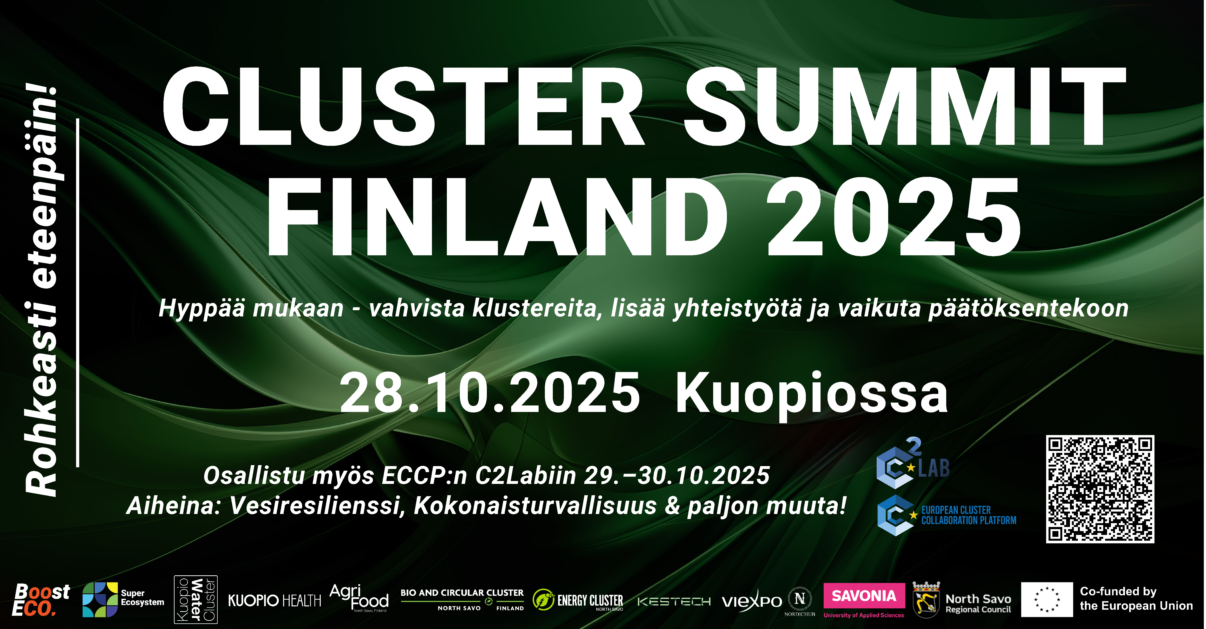 Toimimme yhdessä yliopistojen, tutkimuslaitosten, Business Finlandin, Finnveran, ELY-keskuksen ja Pohjois-Savon Liiton sekä paikallisten ja kansainvälisten klustereiden kanssa.